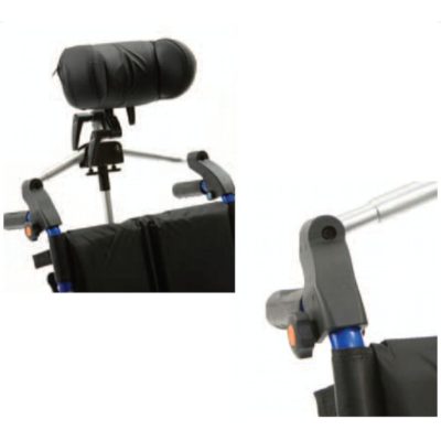 A fejtámla felszerelése egyszerű és gyors, és a tolókarokra rögzíthető, különösen azon részre, amely párhuzamos a kerekesszék haladási irányával.