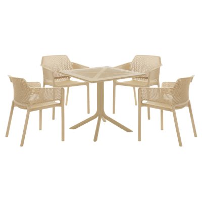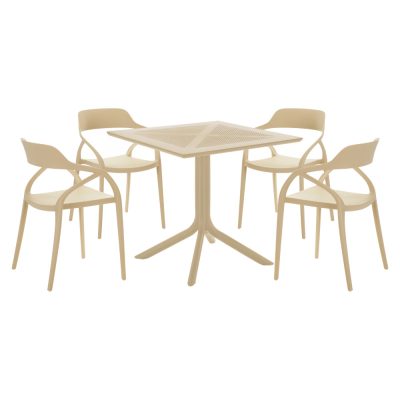 Anyag: műanyag Szín: szürkésbarna Taupe Méretek (SzxMéxMa): 79,5x79,5x74,5 cm Teherbírás: 50 kg Súly: 10,5 kg Egyszerű Praktikus Lábakon Étkező/Kerti asztal Alkalmas kül- és beltéri használatra 4 fő részére Szétszerelve szállítva