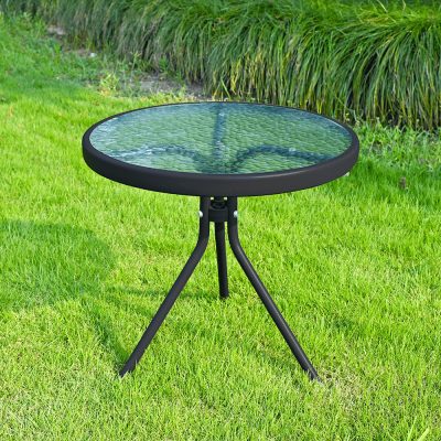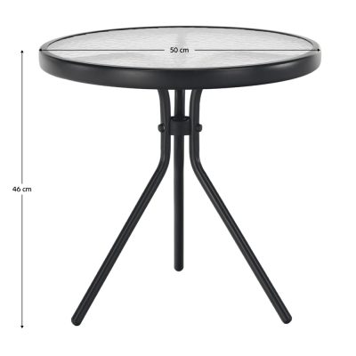 Kerti kisasztal, fekete acél/edzett átlátszó üveg, HABIR