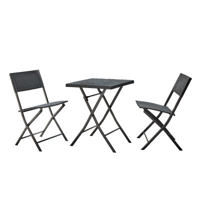 Anyag: technorattan/acél Szín: fekete Asztal (SzxMéxMa): 57x57x71 cm Fotel (SzxMéxMa): 45x58x82 cm Ülés magassága: 45 cm Ülés mélysége: 40 cm Ülés szélessége: 39,5 cm Háttámla szélessége: 45 cm Hát szélessége: 45 cm Fotel teherbírása: 100 kg Asztal teherbírása: 60 kg 3 részes szett Két rattan fotel Asztallal Egészben szállítva