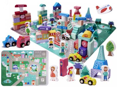 • Készségfejlesztő fa blokkok játékszőnyeggel 128 db – os