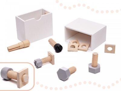 Készségfejlesztő fa szerszámosdoboz