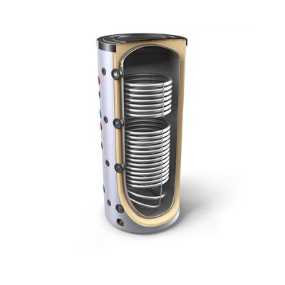 • Két hőcserélős puffertartály - 1000 literes tartály, melegvíz tárolás céljára 110 °C maximális üzemi hőmérséklettel