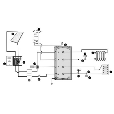 A tartály 95 °C maximális vízhőmérsékletre, 110 °C hőcserélő-hőmérsékletre és 3 bar üzemi nyomásra tervezett, így kiválóan alkalmazható zárt fűtési rendszerekben.