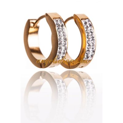 Arany színű bizsu karika fülbevaló dupla sor cirkóniával az ANGELS DIVAT női ruha webáruház és bizsu webshop kínálatában. Válogasson kedvére gyönyörű bizsu fülbevalók, karkötők és nyakláncok közül elérhető áron! Érdemes a kiválasztott ruha mellé egy táskát vagy hozzá illő kiegészítőt is rendelni, hiszen a vásárlása értékhatárától függően akár ingyen kiszállítjuk rendelését! Bizsu gyűjtögető? Figyelmébe ajánljuk kiegészítőink között megtalálható bizsu álló szekrényeinket, bizsu gardróbokat vagy bizsu állványokat, melyekbe könnyedén rendszerezheti ékszereit.