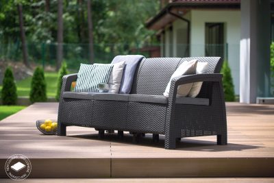 A KETER CORFU LOVE SEAT MAX háromszemélyes kanapé nagyon modern és kényelmes bútor, mely kül - és beltéren egyaránt használható. A polyrattan anyagnak köszönhetően masszívabb és ellenállóbb a bútor az időjárás viszontagságai ellen. A csomag tartalmazza a kényelmes párnát is.