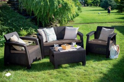 A KETER CORFU egy nagyon modern és kényelmes, kül - és beltéren egyaránt használható bútor garnitúra. A polyrattan anyag ellenáll az időjárás viszontagságainak. A csomag tartalmazza a kényelmes párnákat is.