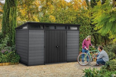 A széles dupla ajtókkal és a viktoriánus ablakkal a CORTINA 11x7-es fészer nem csak a szerszámok és kerti kiegészítők tárolására szolgál, hanem ideális menedéket biztosít fűnyírójának vagy grillezőjének, vagy egyéb felszerelésének.