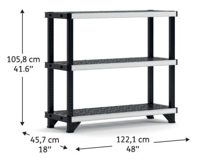 A Keter FUSED 3 polcos ipari állvány a stabilitás, teherbírás és hosszú élettartam tökéletes kombinációját kínálja. A Keter márka által fejlesztett rendszer ideális választás műhelyekbe, garázsokba, raktárakba vagy technikai helyiségekbe, ahol fontos a masszív, biztonságos és jól szervezett tárolás.