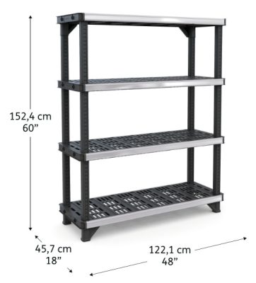 A Keter FUSED 4 polcos ipari állvány a tartósság, stabilitás és nagy teherbírás tökéletes kombinációja. A Keter márka prémium kategóriás tárolórendszere kifejezetten garázsokba, műhelyekbe, raktárakba és technikai helyiségekbe készült, ahol elengedhetetlen a megbízható és biztonságos tárolás.