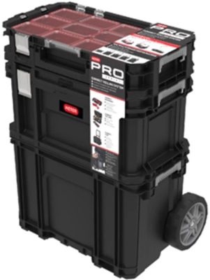 A szett egy rendszerezőből, egy szerszámosládából és egy kerekes kocsiból áll.