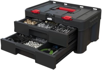A Stack'N'Roll termékcsalád 2 fiókos reteszelhető rendszerezője tökéletes megoldást kínál apró alkatrészek és barkácsoláshoz használt szerszámok rendszerezéséhez és tárolásához. Két fiókja teljesen kihúzható, így megkönnyítve a nagyobb méretű szerszámok elhelyezését is. A fiókok reteszelhetők, így többé nem kell aggódnod, hogy szállítás közben kinyílnak! A legjobb minőségű műanyagból készül, ami garantálja a tartósságát.