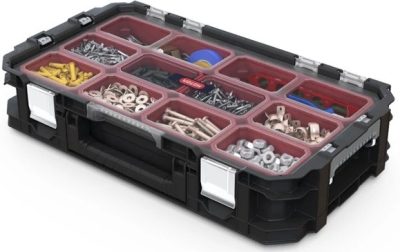 Az apró alkatrészek tárolásához kivehető, különböző méretű rekeszekkel rendelkezik. Az átlátszó polikarbonát fedelének köszönhetően a benne tárolt tárgyak folyamatosan láthatóak maradnak.