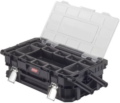 Ez a kétszintes rendszerező 22 kivehető rekeszt tartalmaz és a Connect termékcsalád termékeivel kompatibilis, azokkal összekapcsolható.