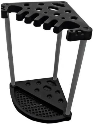 CORNER TOLL RACK sarok állvány kerti szerszámok tárolására. Lapát, gereblye és egyéb tartozék rögzítésére alkalmas nyílással rendelkezik. Könnyű összeszerelni - a maximális stabilitás érdekében a garázs falára, tárolóra vagy szerszámos házra rögzíthető. A termék magas minőségű műanyagból készült, ellenáll a mechanikus sérüléseknek és az időjárás viszontagságainak. Termék mérete (cm) 56,5 x 56,5 x 88,5