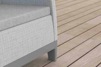 A szett modern skandináv stílusa letisztult formákat és természetes, juta hatású felületet ötvöz, amely meleg, otthonos hangulatot teremt. A kétszínű kivitel (Ash grey / Storm grey) elegáns megjelenést biztosít, miközben könnyen kombinálható más kültéri vagy beltéri bútorokkal.