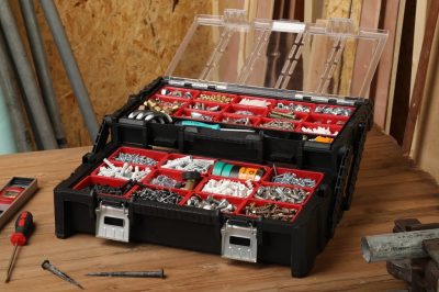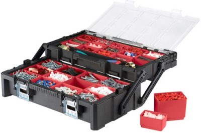 Rendkívül tágas és sokoldalú rendszerező, amely profik és hobbi-barkácsolók számára is ideális választás, ha gyorsan és könnyen szeretnének hozzáférni az apró alkatrészekhez és szerszámokhoz. Több szintes kialakítása a teljes tartalmát láthatóvá teszi kinyitás után, a felső szinten lévő tárgyak pedig folyamatosan láthatóak az átlátszó tetőnek köszönhetően. 27 kivehető rekesz biztosítja a testreszabhatóságot.