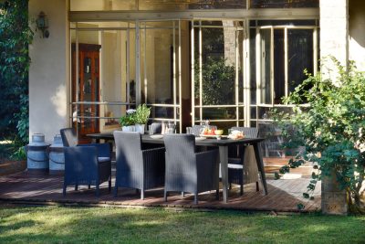 A TRENTON DINING típusú kerti szék elegáns, modern és retro stílusú rattan utánzatú öntött műanyagból készült. A szék kiválóan ellenáll az időjárási viszonyoknak és az UV sugárzásnak is. A széket kültéren és beltéren egyaránt lehet használni. A székhez hozzátartozik a kényelmes párna (levehető huzatú) is.