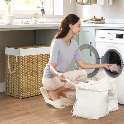 Az 57 x 33 x 60 cm-es (H x Sz x Ma) osztott ruhaneművel gyorsan szétválogathatja a ruhaneműt szín, típus vagy különleges preferencia szerint.Az osztott béléstáska a kosárhoz kötődik, így nem esik le az aljára, miközben továbbra is könnyen kivehető és hordozható.