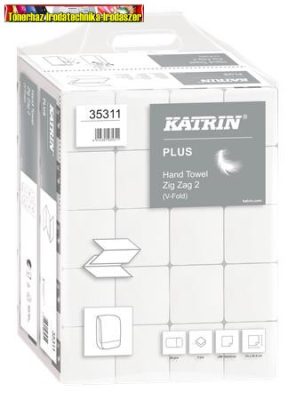 Kéztörlő Z hajtogatott hófehér 2 rét. 200lap/csom 20cs/dob 100% cellulóz Katrin Plus (35311)