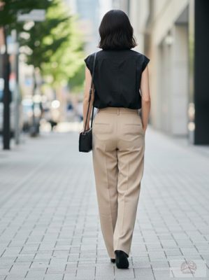 Különleges, kontrasztos textúrájú függőleges sáv a hátoldalon, amely nyújtja az alakot és modern élt ad a fazonnak.