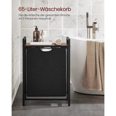 szennyes kosár polccal, szennyeskosár, oxfordi szövetből, kihúzható, kivehető, fém keret, 65 l, 50 x 33 x 72 cm, vintage barna/fekete