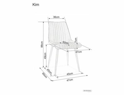 A Kim Velvet étkezőszék a modern design és a kényelem tökéletes ötvözete. A szék puha, zöld bársony kárpitozással és bordázott háttámlával rendelkezik, amely nem csak esztétikus, de kényelmes támaszt is nyújt. A matt fekete fém váz stabil alapot biztosít és tökéletesen harmonizál a bársony kárpitozással. A szék 88 cm magas, 47 cm széles, és az ülőmagassága 49 cm, ami ideális az étkezőasztal mellé.