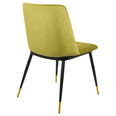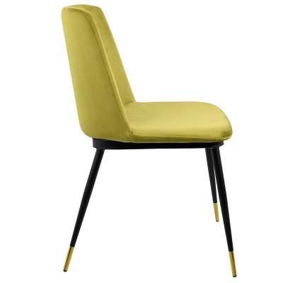 A King Home Diego szék a modern elegancia megtestesítője. A világoszöld bársony kárpitozás puha tapintású és szemet gyönyörködtető, míg a fekete fém váz arany végződései különleges karaktert kölcsönöznek a széknek. A szék ergonomikus kialakítása és a kényelmes ülőfelület hosszú távú komfortot biztosít.