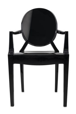 A King Home Louis szék a klasszikus francia bútorstílus modern újraértelmezése. A teljes egészében fekete polikarbonátból készült szék egyesíti a hagyományos formatervezést a modern technológiával. Az átlátszó anyag optikailag könnyeddé teszi a teret, miközben a szék megtartja tekintélyes megjelenését.