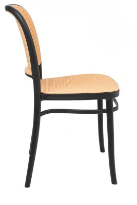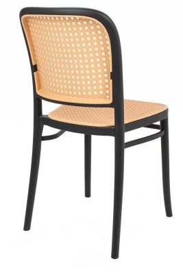 A Wicky szék tökéletesen ötvözi a klasszikus kerti bútor megjelenését a modern anyaghasználattal. A rattan hatású, áttört mintázatú kialakítás könnyedséget és légies megjelenést kölcsönöz, miközben a polipropilén szerkezet tartósságot és időtállóságot biztosít. A fekete váz és a természetes rattan hatású ülőfelület harmonikus kontrasztot alkot.