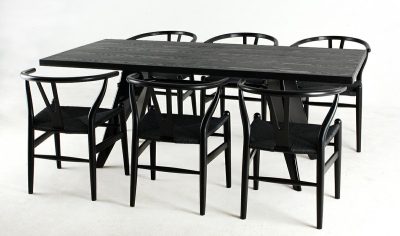 A King Home Wishbone szék a skandináv bútortervezés ikonikus darabja, amely ötvözi az elegáns megjelenést a funkcionalitással. A fekete bükkfa váz és a természetes fonott ülőfelület tökéletes összhangot alkot, míg a jellegzetes Y-alakú háttámla nem csak esztétikai elem, hanem optimális támaszt is nyújt. A szék könnyű szerkezete ellenére rendkívül stabil és tartós.