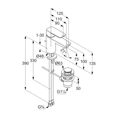 • KLUDI Pure&Style 75 mosdócsaptelep automata leeresztő szeleppel