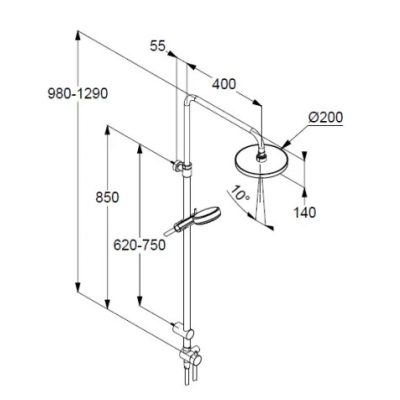 A felszállócső vízszintesen és függőlegesen egyaránt állítható, és a kézizuhany tartó is a felhasználói igény szerint állítható. Ha a kézizuhanyt szeretnénk használni akkor a zuhanyszetten található szelepet hátra kell fordítani. Amennyiben pedig a felső fejzuhanyt használnánk, akkor ezt a szelepet előre fordítsuk.