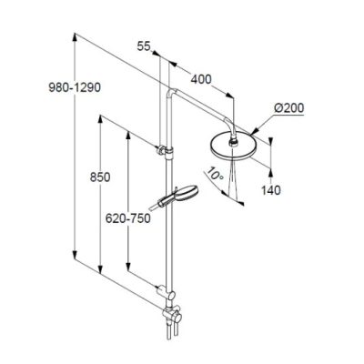 A felszállócső vízszintesen és függőlegesen egyaránt állítható, és a kézizuhany tartó is a felhasználói igény szerint állítható. Ha a kézizuhanyt szeretnénk használni akkor a zuhanyszetten található szelepet hátra kell fordítani. Amennyiben pedig a felső fejzuhanyt használnánk, akkor ezt a szelepet előre fordítsuk.