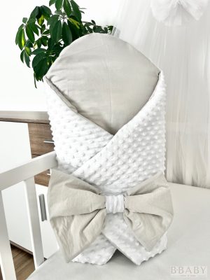 A Ross kókuszpólya a nyugalom és a természetes puhaság megtestesítője. A fehér buborékos minky külső selymes tapintású, megnyugtató és ölelő érzést nyújt az újszülötteknek, míg a halvány szürke 100% pamutvászon belső légáteresztő és kíméletes a baba bőréhez – tökéletes választás mind kisfiúknak, mind kislányoknak.