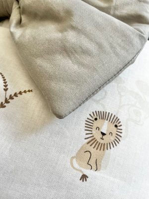 • Huzat: 100% pamutvászon (külső: bézs alapon szafaris kisállatok minta, belső: egyszínű szürke)