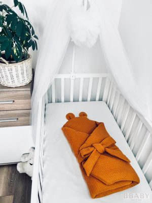 A 80×80 cm-es méret praktikus és sokoldalú: ha kiveszed a betétet, a pólya puha takaróként is tovább használható.