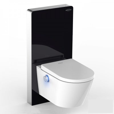 • Komplett WC és bidé prémium WC tartállyal fekete színben üveg borítással érintésmentes öblítéssel