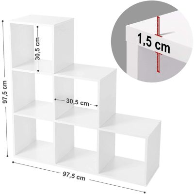 • Könyvespolc, lépcsős polc 6 rekesszel, 97,5 x 97,5 x 29 cm