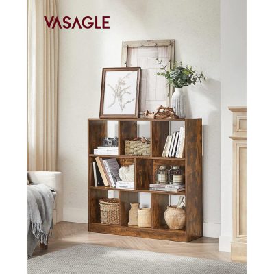 könyvespolc, könyvespolc nyitott polcokkal, szabadon álló tárolóegység nappalihoz, hálószoba, gyerekszoba, 97,5 x 100 x 30 cm, rusztikus barna