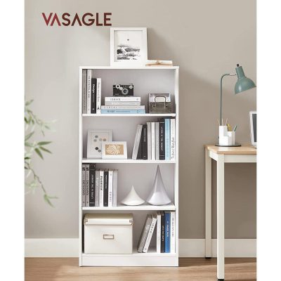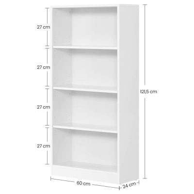 könyvespolc, 4 szintes polcegység, tárolószekrény, állítható magasságú polcokkal, nappaliba, hálószobába, irodába, 60 x 24 x 121,5 cm, fehér:
