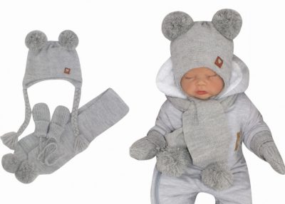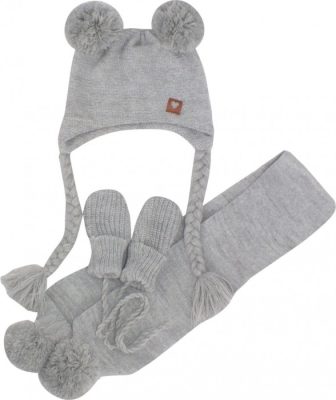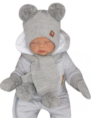 Kötött sapka sállal és kesztyűvel, szürke színben (6-9 hónaposnak)