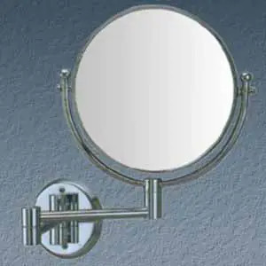 Kozmetikai tükör, kétkaros, sima és 3X nagyítású. Tükör átmérő: 20 cm Anyaga: krómacél