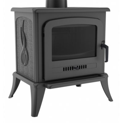 A kályha üvege egy speciális hőálló kerámiából készült, amely akár 800°C-os hőmérsékletet is kibír. A dekoratív fatartó megkönnyíti a kályha tisztán tartását, és véd a fa kihullásától.