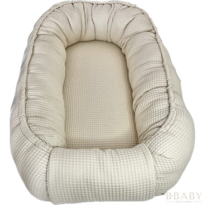 Krém színű waffle babafészek – természetes puhaság, nyugalmat árasztó kuckó újszülötteknek
