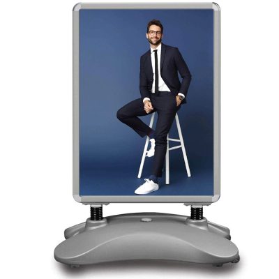 Messze a legnépszerűbb kültéri járdamegállító tábla. A keret rugókon van rögzítve, aminek köszönhetően a tábla alkalmazkodik a szélhez. Az alap egy víztartály. Miután feltöltötték, a rendszer nagyon nehézzé válik. Azonban fogantyúval és az alján elhelyezett kerekekkel mozgatható. Egy snap keret lehetővé teszi, hogy egy plakátot néhány másodperc alatt behelyezzenek/cseréljenek. Egy vastag plakátvédő UV-szűrővel van felszerelve, amely védi a nyomatot a napfénytől és a színek elhalványulásától. A tábla snap kerete 32 mm-es anodizált alumínium profilból készült.