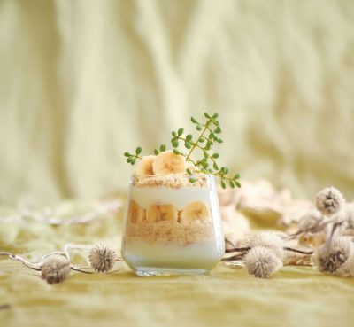 • Desszert tálalás: rétegzett pohárkrémek, mousse-ok, banános kekszes finomságok