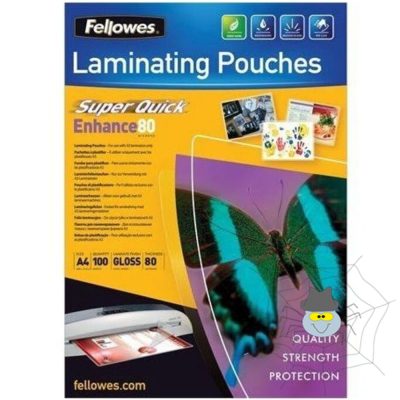 • Lamináló fólia, A4, 80 mikron, fényes, 100 db/doboz, SuperQuick Fellowes®