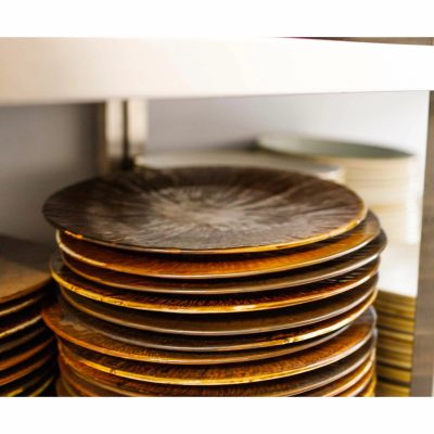 AFIRE kollekciótíz különböző tálalóedényt kínál, amelyekegyedülálló hatást keltenek az asztalon. Arézszín és a fiatalított, kalapált porcelánfelület kombinációjanapjaink egyik erős trendje az éttermek és az étkezőhelyek berendezésében. A kollekciót aréz öregedésének hatásaihlette, az egyenetlen textúra és a porcelán újszerű égetési technikával elért finom fényjátéka tökéletes hátteret biztosít az ételek tálalásához.