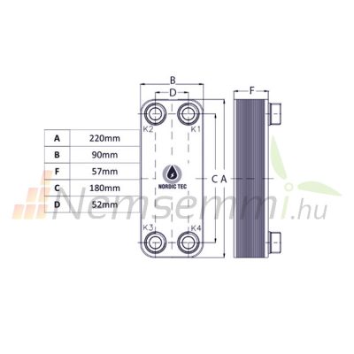 • Lemezes hőcserélő 22 lemez 100kW 1" külső csatlakozással